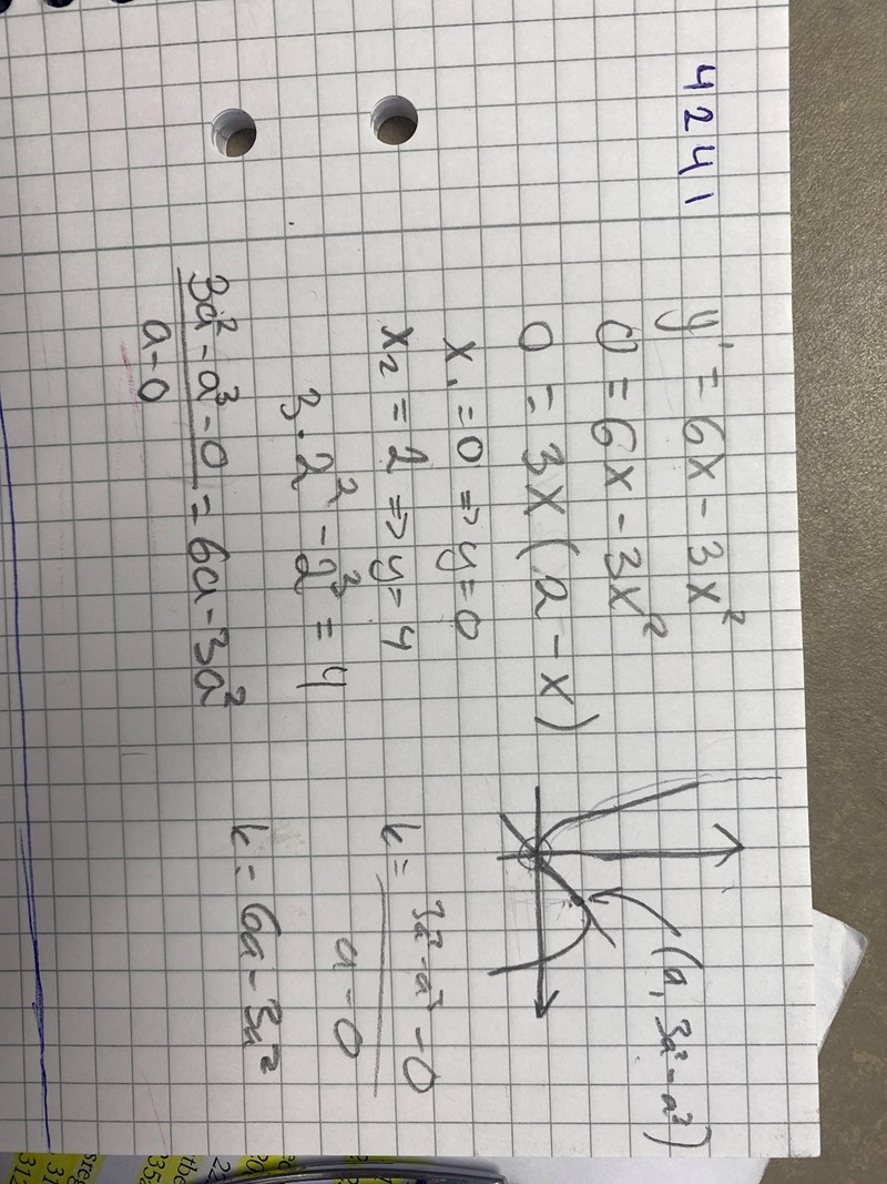 Nu fick jag lära mig att insättningen av x-koordinaten i derivatan ger lutningen för en tangent i den punkten.