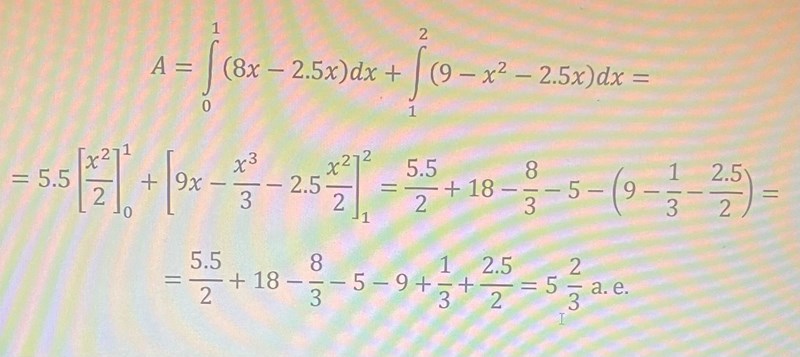 Jag har fastnat på denna uppgift, förstår inte riktigt varför man adderar integralen 8x-2,5x blir tacksam för svar!