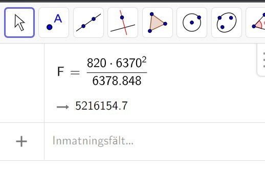SomDutt skrev:Okej, k blir ju då 800*6370^2. Blir uttrycket då: