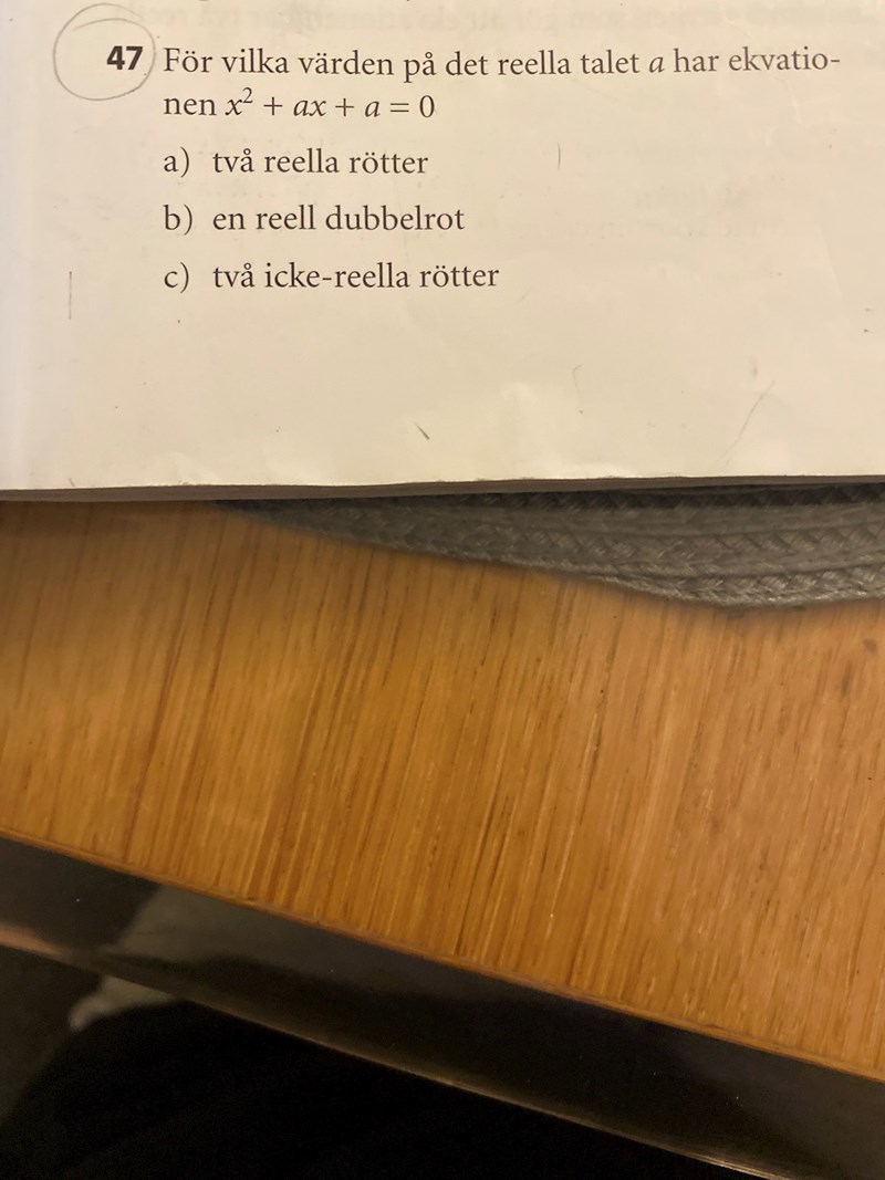 "för vilka a gäller a2/4-a>0 och ger ekvationen två reela rötter"?