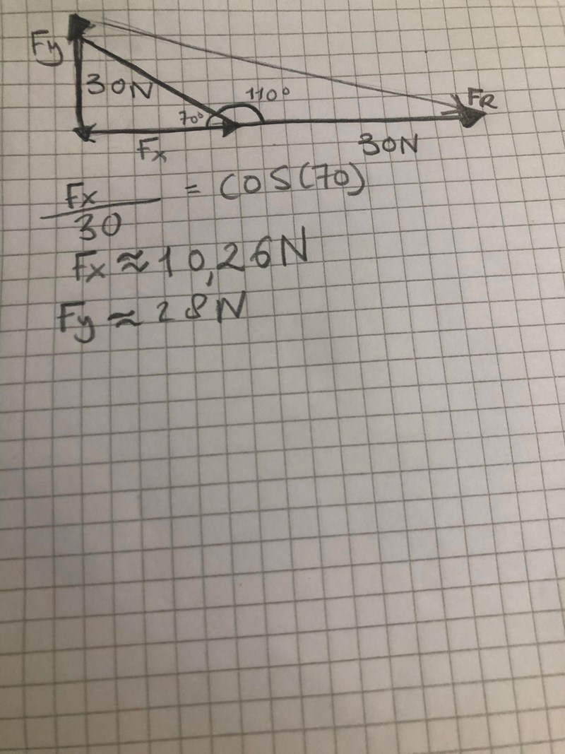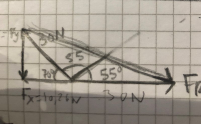 Jag fick att F(y)=28N vilket är katet 1 för triangeln