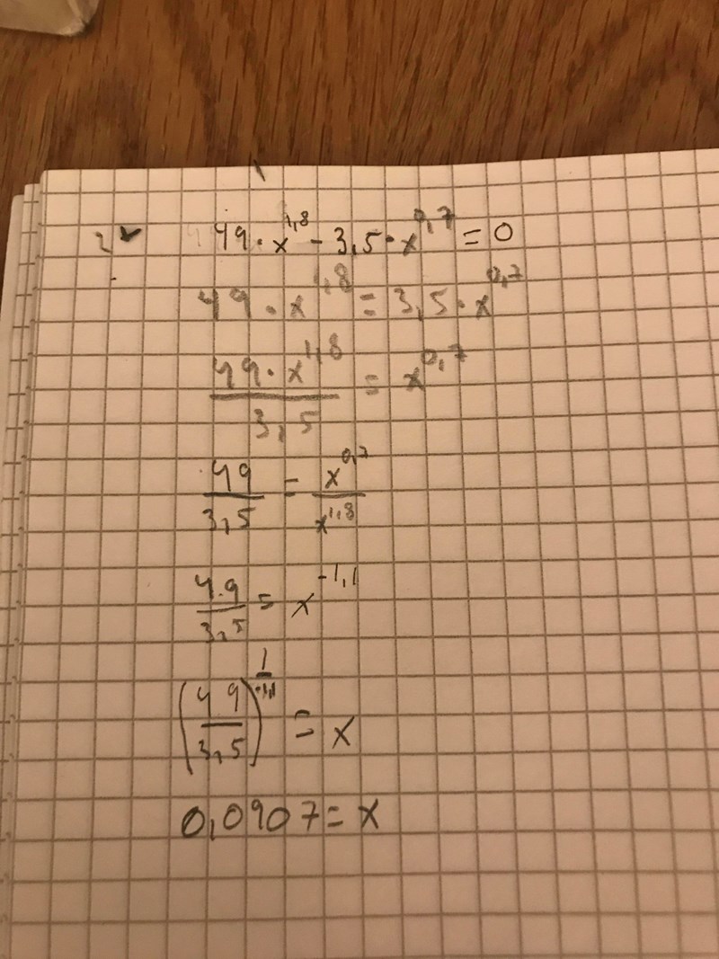 XDXDXDXDXDXD skrev:Lös ekvationen; 49•x^1.8-3.5•x^0.7=0