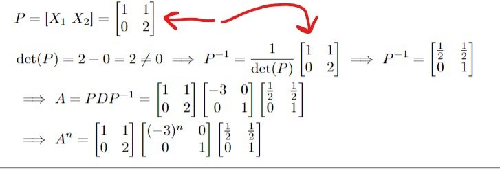 Hej, i tidigare uppgifter när jag räknar p^-1 och ska använda 1/det(p) har jag alltid bytt plats på talen (vänster upp, höger ner) alltså en korsningsbyte, samt byter jag tecken i högerkorsning, alltså talet vänster ner och höger upp. Men i denna frågans facit, så hoppar läraren över det och skriver in det utan plats- och teckenbyte. Varför?