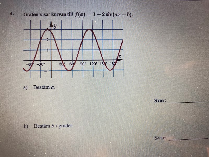 Du kan också fundera över vad perioden för f(x) är. Hur långt är det mellan två x som ger maximum?