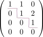 Om vi systematiskt eliminerar matrisen i flera steg kan vi slutligen få den på en sorts trappstegsform. Man säger så för att matrisen då bildar en trappa: