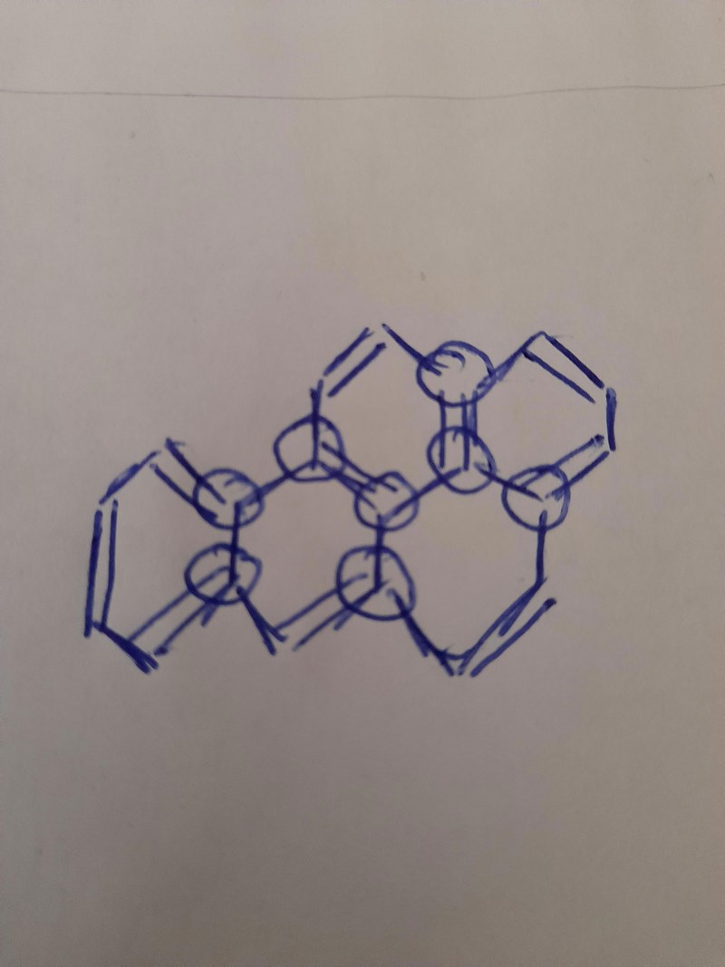 mag1 skrev:Fast bilden illustrerar motsatsen, vilket också fungerar. Nu är de kolatomer som endast har tre bindningar till andra kol utritade - och varje sådan kolatom har då en bindning till de icke utritade väteatomerna. Så varje enskild kolatom markerad binder en väteatom var...