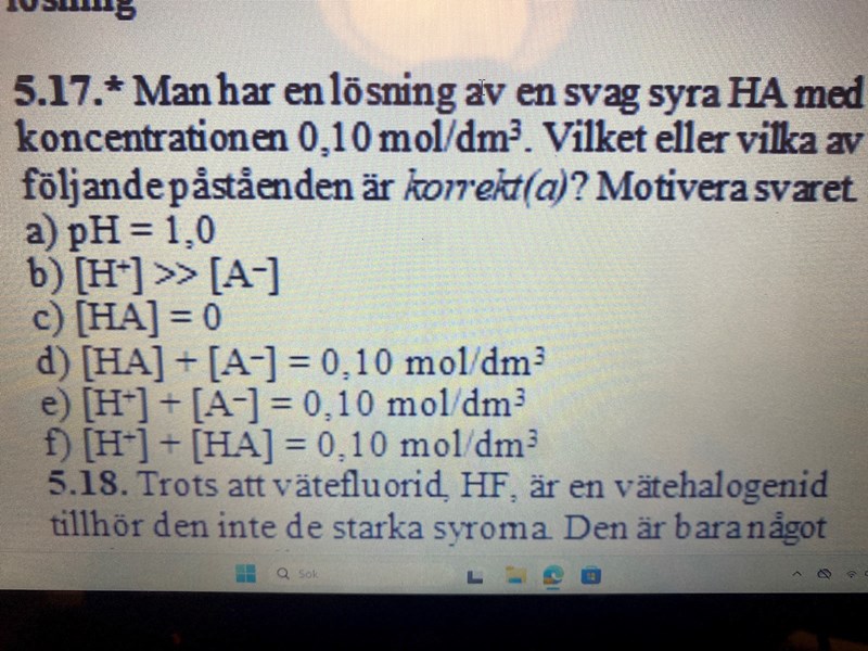 Det står i början av uppgiften - en svag syra HA. Det är alltså en svag (enptronig) syra. I en vattenlösning av en svag syra är det bara en liten andel som genomgår protolys enligt