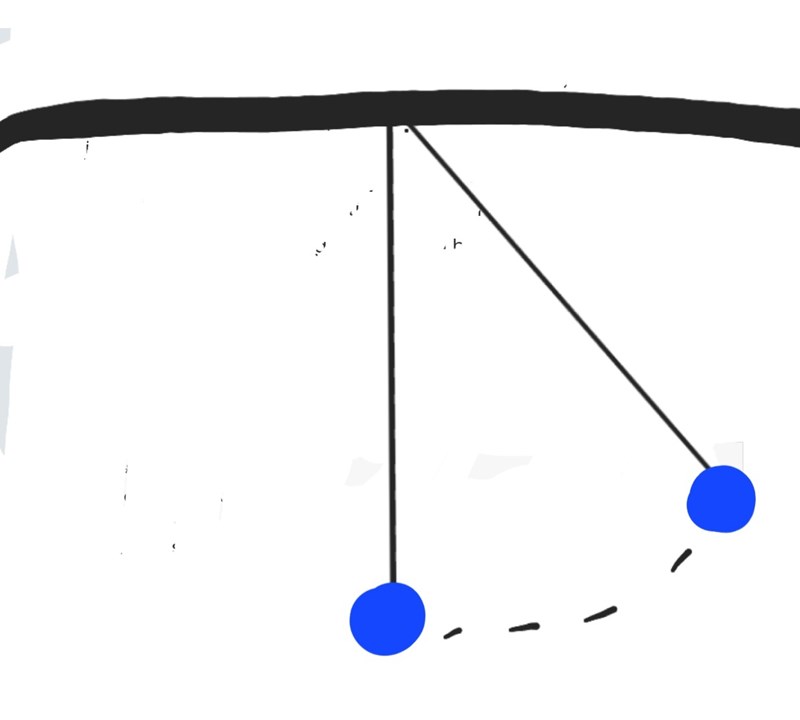 När kulan lyfts till höger så är den 0,4 meter högre upp än när den hänger rakt ner.