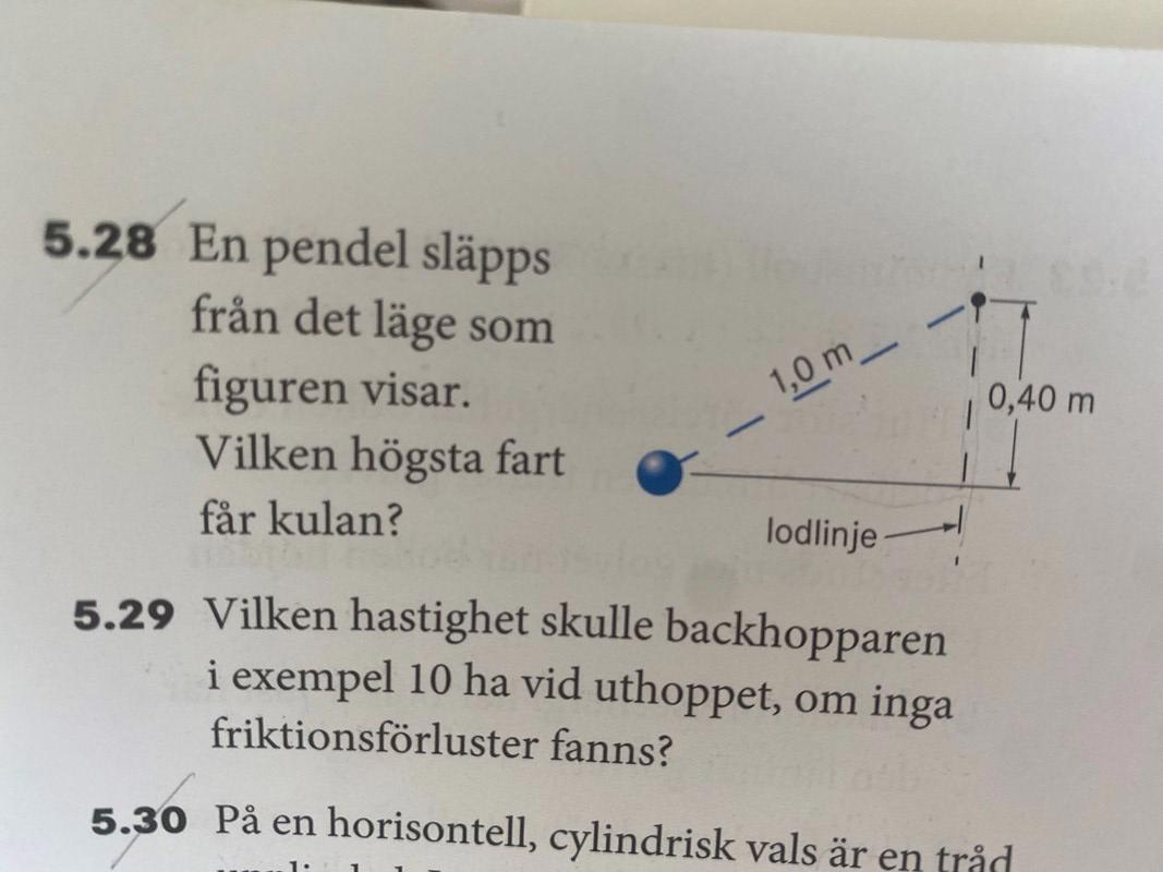 Rita pendeln då snöret är vertikalt. Snöret är alltid 1 m. Sen svarar du på Lagunas inlägg.
