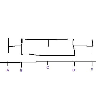 Bubo har rätt när det handlar om verkligheten, men här blir det SÅÅÅ mycket lättare att ta med medianen när man räknar ut kvartilerna. Om man räknar på andra sättet (och inte tar med medianennär man beräknar kvartilerna), gäller det att nedre kvartilen blir medelvärdet mellan A och B och övre kvartilen blir medelvärdet mellan D och E. Jag blir osäker på hur man brukar definiera kvartilerna, så vi får väl jämföra med facit och se vilket som var rätt.