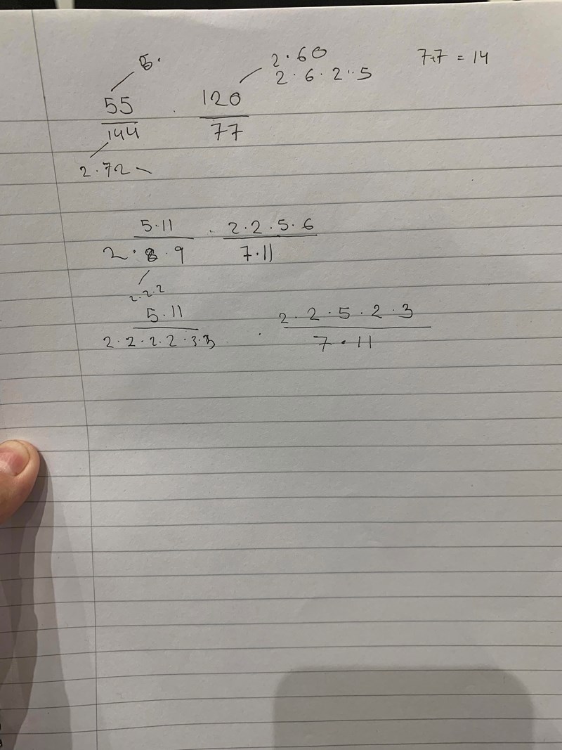Eftersom både 55 och 77 är delbara med 11 så förkortar jag med 11: