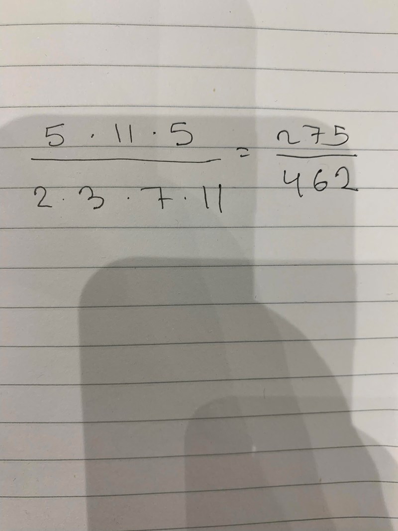 jag menar att efter jag strykt och fått275/462 så är det stort tal och 462 verkar inte vara minsta gemensamma nämnare står annat svar i facit