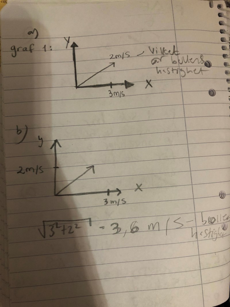 Hur vet man vad den totala farten/hastigheten är? Borde det i a frågan inte vara 3m/s+2m/s?