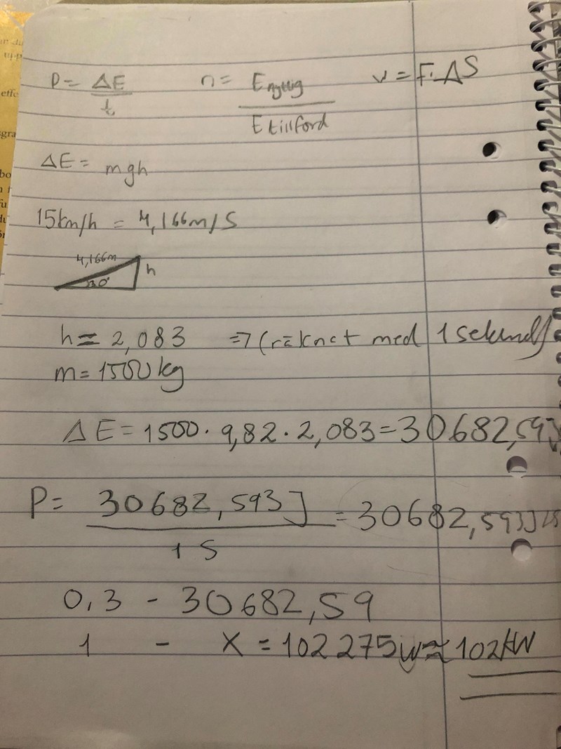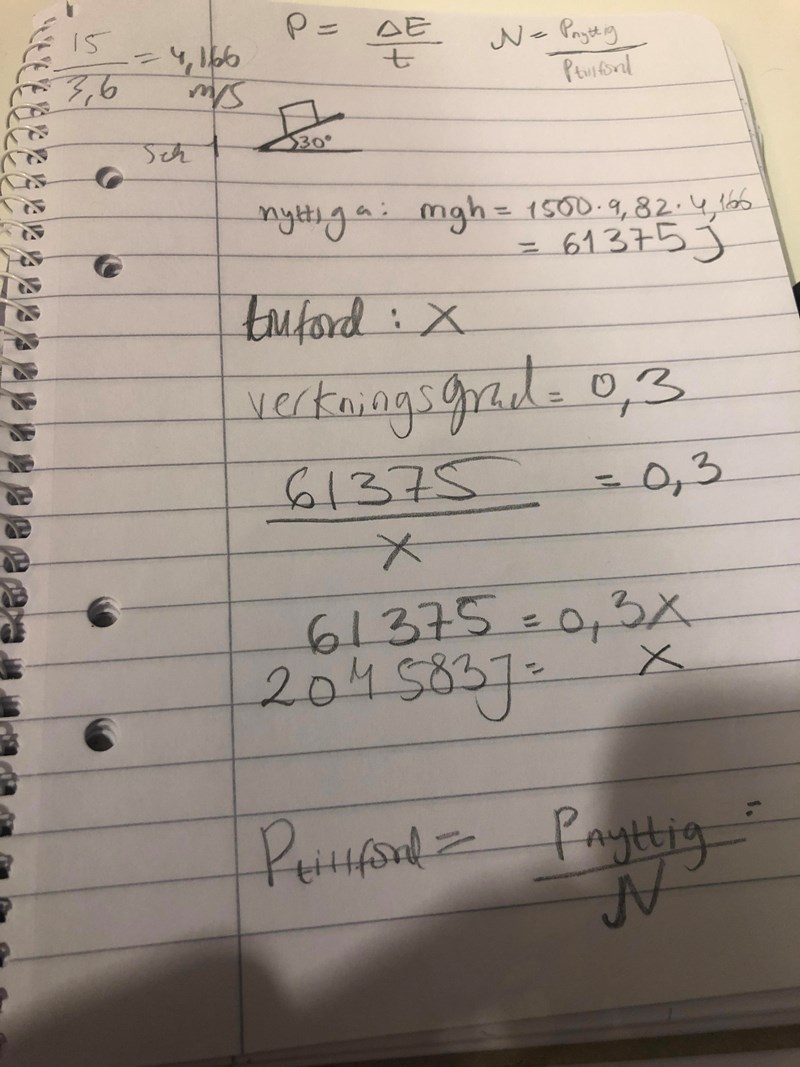 Om jag tar P nyttig = 61375J delat med tillverkningsgraden 0.3 då får jag 204 583J-> tillförd men det är fel enligt facit
