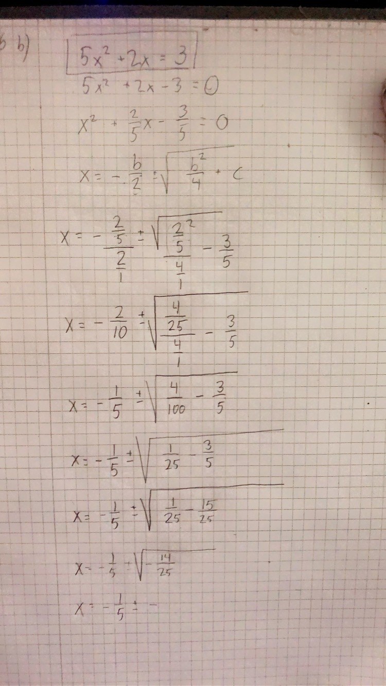 5x^2 + 2x = 3. Vart gör jag fel? Se bild