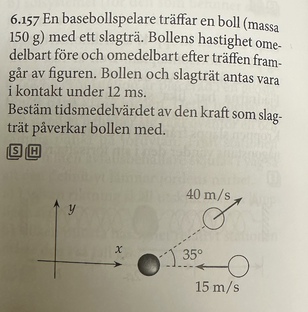 6.157 En basebollspelare träffar en boll (massa 150g) med ett slagträ.