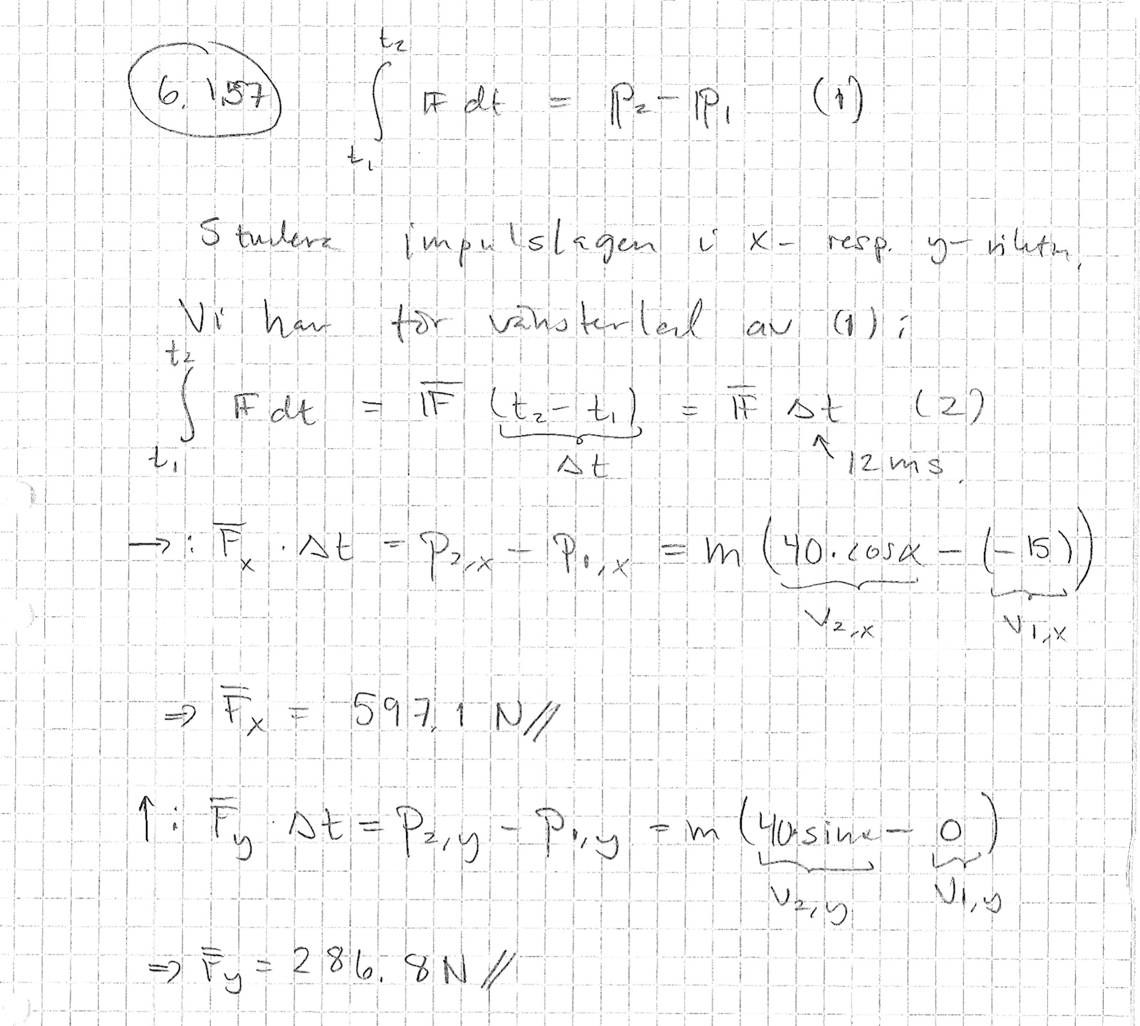 Hej, jag undrar om jag gör något fel med min beräkning, jag gjorde precis som facit (bilden är från lärarens lösning) och sedan för att räkna ut totala kraften använde jag mig av Pythagorus sats, är det fel? Jag får cirka 662 N medan i facit står det 597 N.