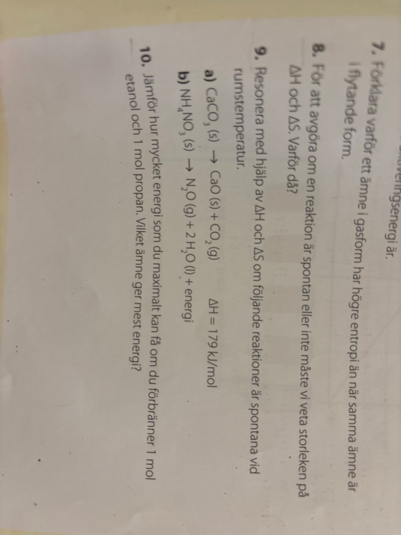 I svaret skall du resonera. Hur långt har du kommit? Och hur har spontana reaktioner beskrivits när ni arbetat med termodynamik under kemin?