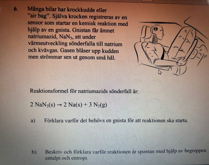 På denna uppgift på A så tänkte jag att reaktionen verkar vara endoterm.. den kräver energi för att komma igång. Det krävs alltså en viss aktiveringsenergi för att bryta bindningarna och sätta igång reaktionen men när den väll satts igång så sker den av sig självt och därför är den spontan. Detta är dock fel, men varföd?