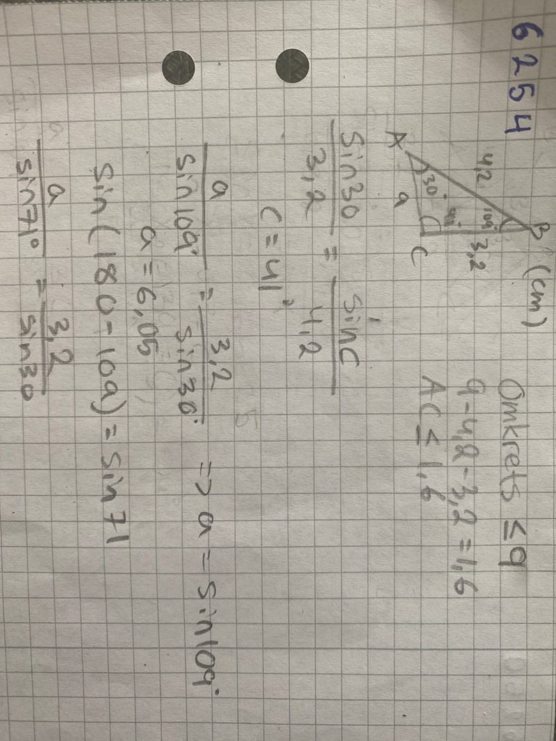 Du har börjat med sinussatsen och fått vinkeln C=41 grader. Det är vinkeln i C2 i min bild. Då räknar du på den stora trianglen. Vinkeln i C1 är 180-C2.
