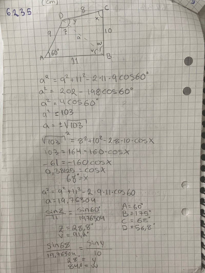 I början är a roten ur 103, senare när du tar sin(60)/a så har du sin(60)/19,76304.