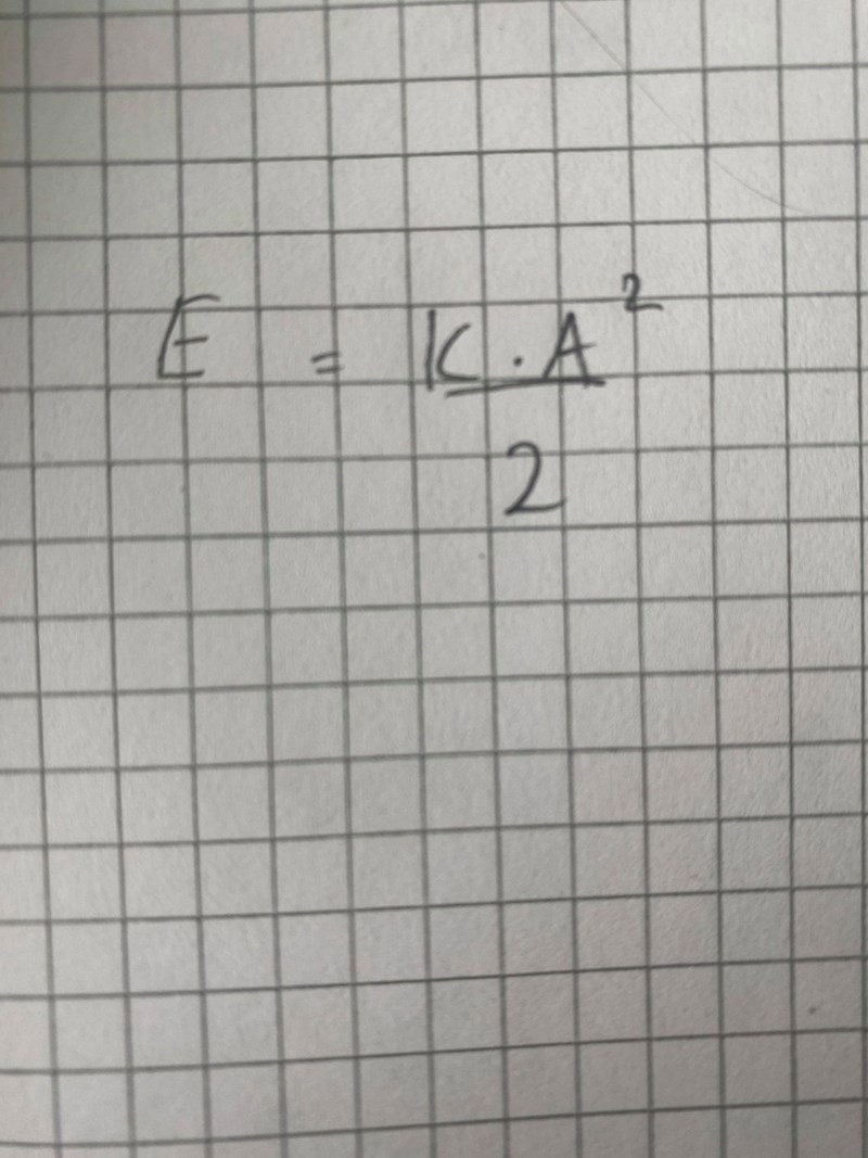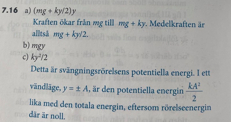 Så om man har A i formeln istället för x så blir det problematiskt i och med att formeln då beskriver den sammanlagda energin (potentiell energi+ rörelseenergi). Och man kan inte använda den formeln då det sträckan y inte är amplituden,? Men hur kommer man fram till formeln i facit?