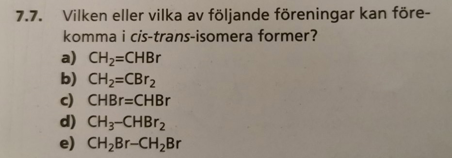 Smaragdalena skrev:Det är hur bindningarna till bromatomerna är som avgör om det är cis eller trans. Om båda är på samma sida är det cis, om de är på var sin sida är det trans.