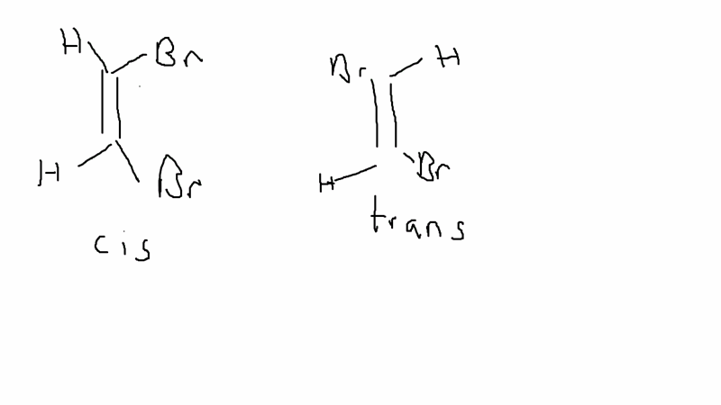 Det är hur bindningarna till bromatomerna är som avgör om det är cis eller trans. Om båda är på samma sida är det cis, om de är på var sin sida är det trans.