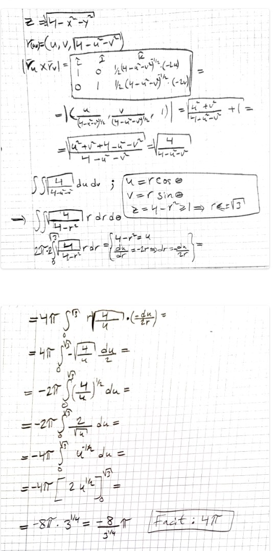 4 - (u2 + v2) 1. Vilket ger området u2 + v2 3. Kanske läge att införa polära koordinater i uv-planet.