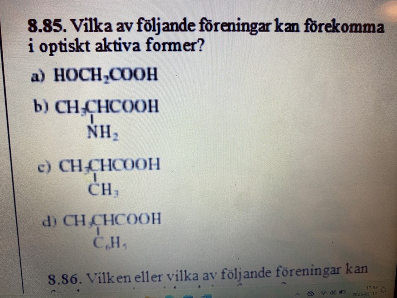 Tack! När jag försökte rita strukturformeln för d blev jag osäker. Ser den ut såhär?