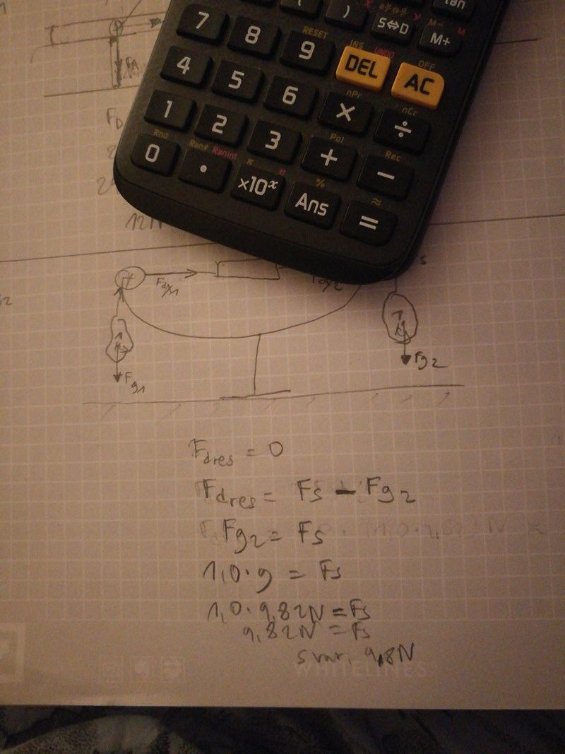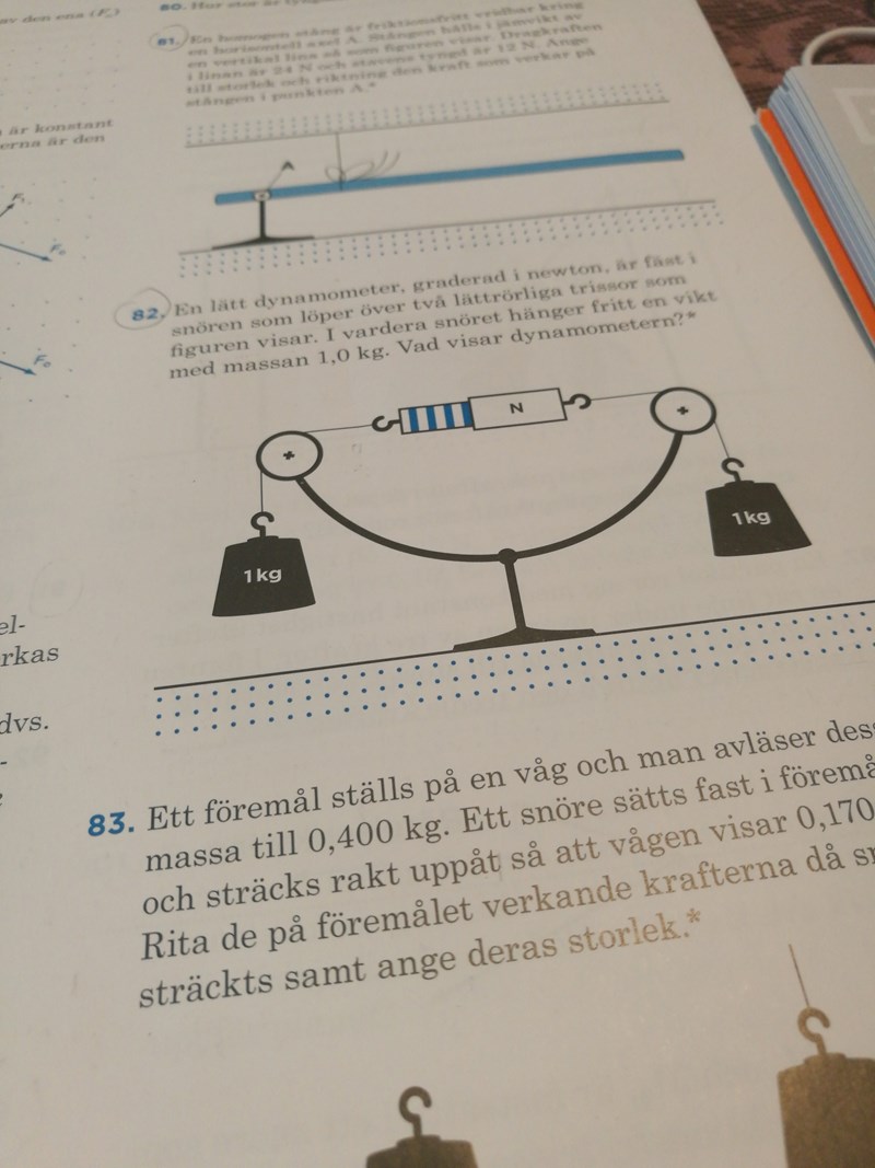 Facit håller dock ej med om att svaret är 19,64 N. De svarade med 9,8 N och jag fattar ej varför.