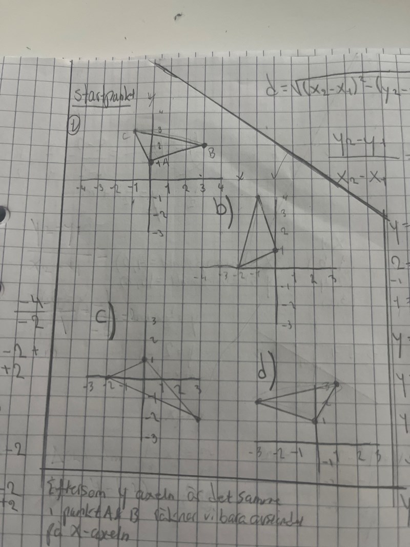 jag ritade startpunkten lägst upp sedan b c och d men inte a då jag visste från allra början att det inte kunde vara den, men här gissade jag bara fram att alternativ b var korrekt men vet inte hur jag kan förklara det.