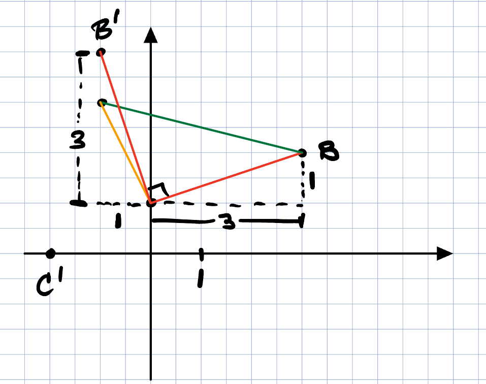 Du har rätt i att (b) är rätt. Alla sidor i triangeln är lika långa, men nu vinkelräta (-90 grader) mot hur de var tidigare. I din figur (b) har du ju samma punkter som svaralternativet.