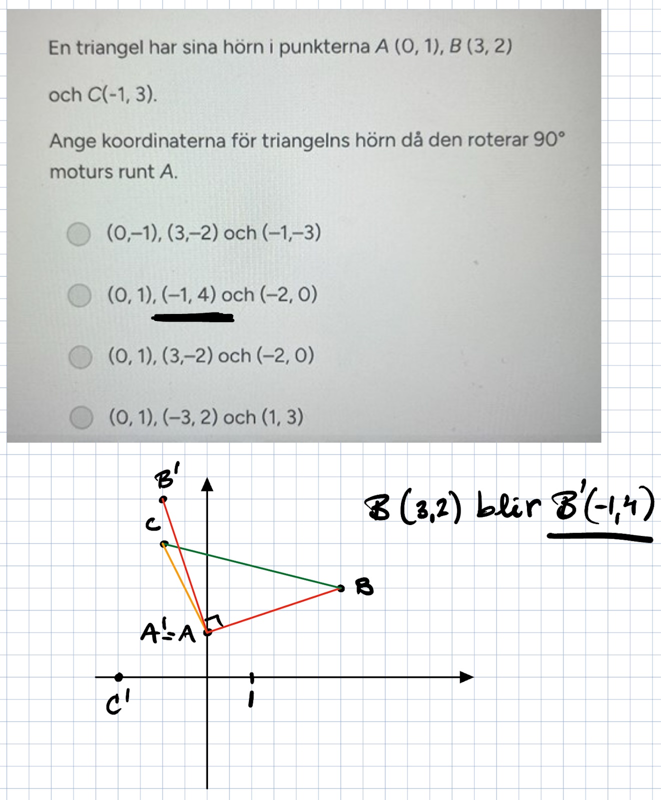 Nej, du har ju kommit fram till rätt svar genom att rotera figuren grafiskt. Det finns andra metoder också förstås, men kanske inte i Matte 1.