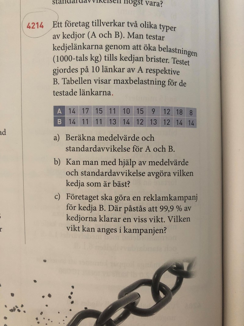 99,9% av kedja B klara en viss vikt, vilken vikt? Uppgift 4214 liber ma2c