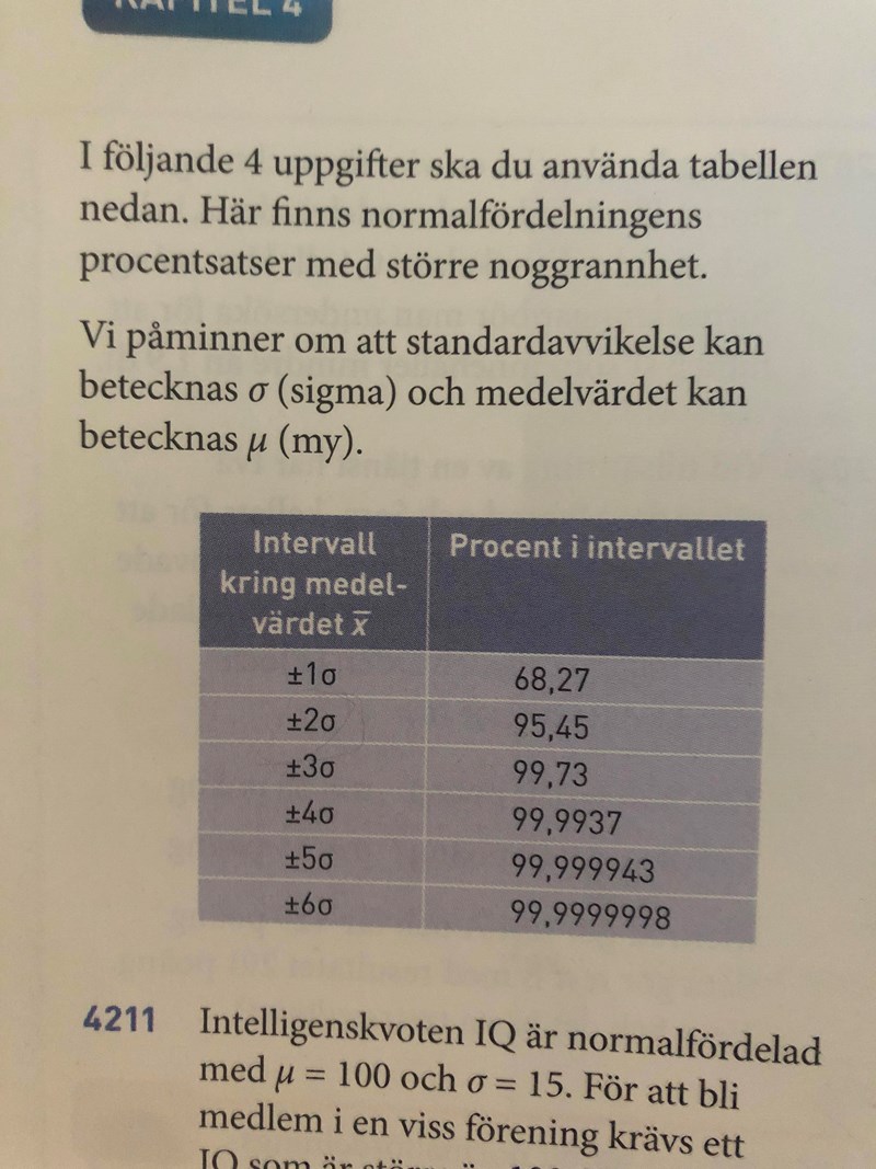 Standard avvikelsen är 1,2 men jag vet ej hur man räknar ut 95% bara 34%,14% och 2% (och att man adderar dem) men inget av de där adderat blir 95, och varför ska man veta 95%?