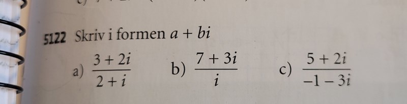 Jag behöver hjälp med c). Man brukar förlänga bråket med konjugatet när nämnaren ät icke reell. Men nu så ser nämnaren lite annorlunda ut. Ska man tänka på ett annat sätt?