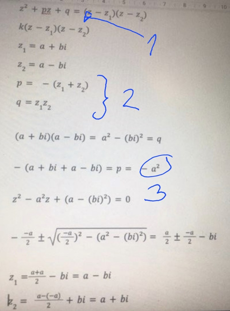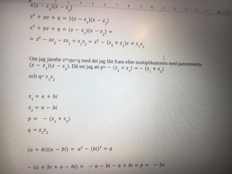 Utgå från z2+pz+q = (z-z1)(z-z2)