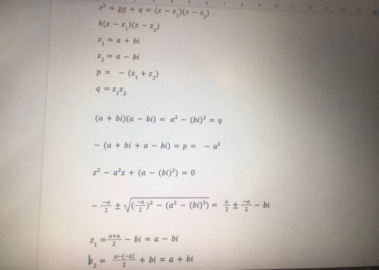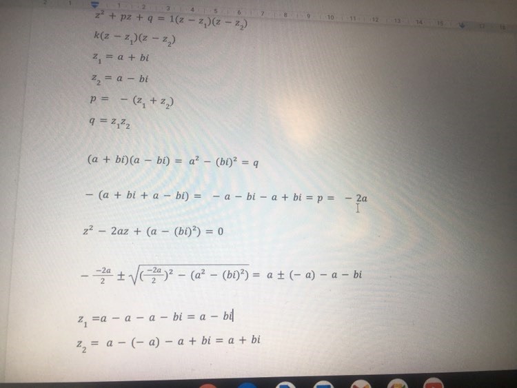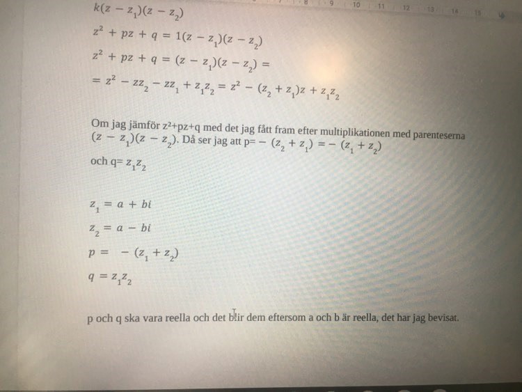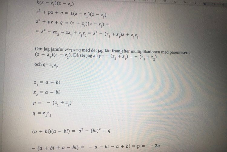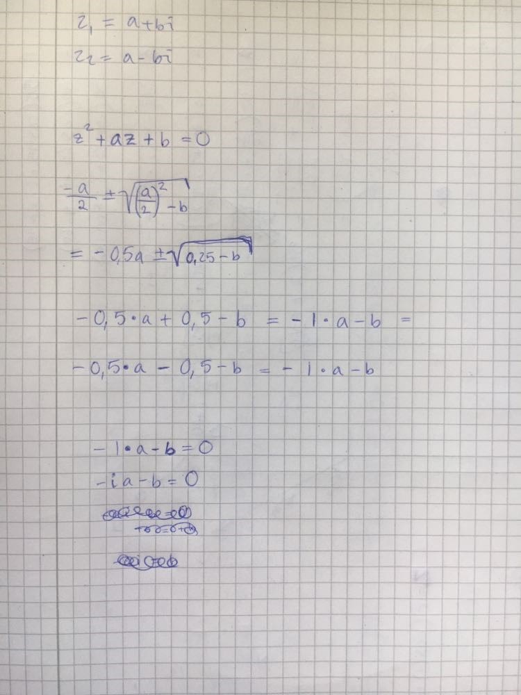 "Visa att om =a+bi och =a-bi (a och b reella) är rötter till ekvationen
