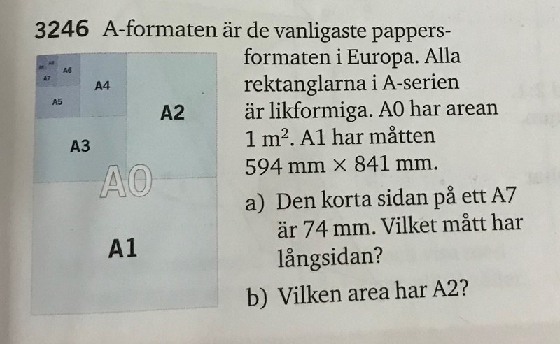 Ser du på bilden att kortsidan på A0 är långsidan på A1