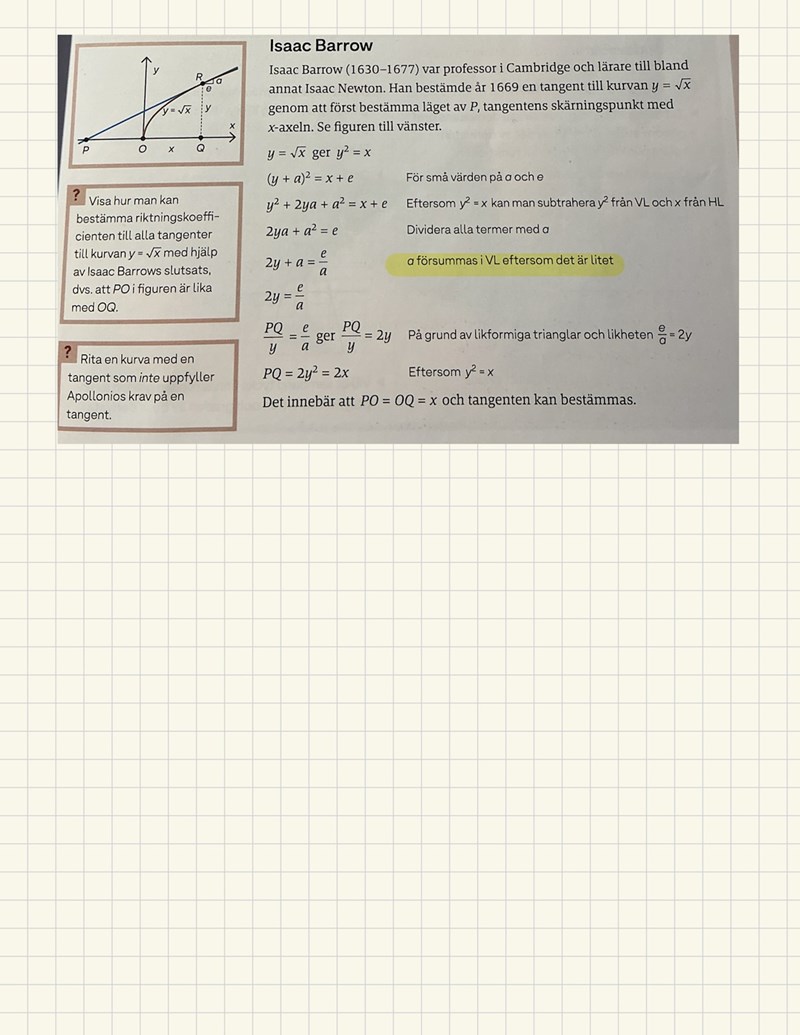 Nja, det är väl en lite "förenklad" version. Man skall tänka på att när Barrow verkade så hade varken Newton eller Leibniz gjort sina stora upptäckter. Det var inte alltid det var stringenta bevis, men de hade oftast exceptionell intuition. Om du hoppar över "tag bort a" kommer du att få