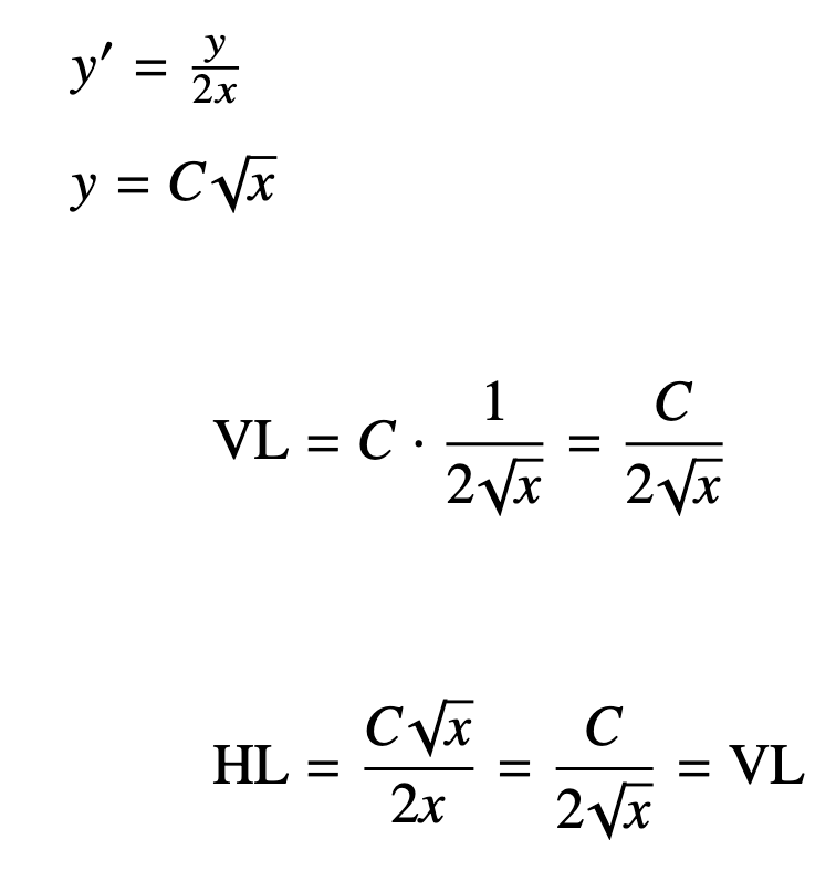 Verifiera att y=C rot(x) satisfierar ekvationen y' = y/(2x)