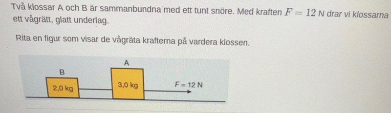 Hur stor är kraften som drar kloss A åt höger? Hur stor är kraften som drar kloss B åt höger?
