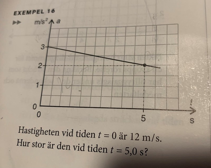 Meningen är att du ska använda grafen för att bestämma , ändringen i hastigheten. Sedan addera till .