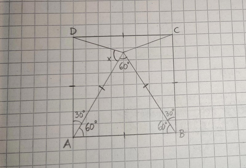 ABCD är en kvadrat och ABE är en liksidig triangel. Bestäm vinkeln x.