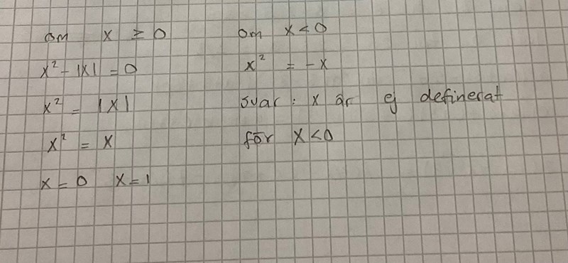 Du har förutsatt att x<0, så -x är ett positivt tal.