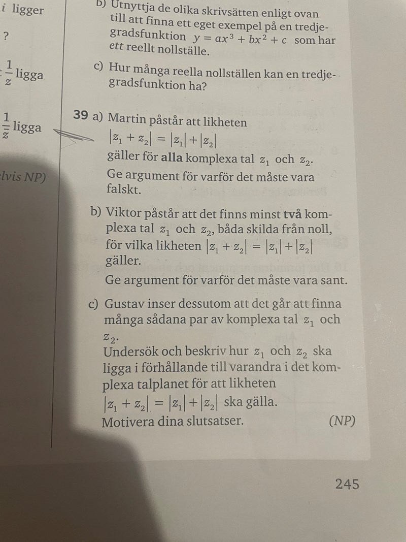 Prova att rita två tal som vektorer i det komplexa talplanet. Om man adderar dem, och de inte är parallella, vad kan man då säga om ?