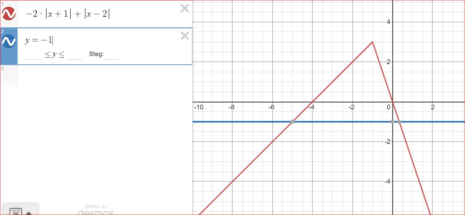 Jag har löst -2*|x+1|+|x-2|=-1