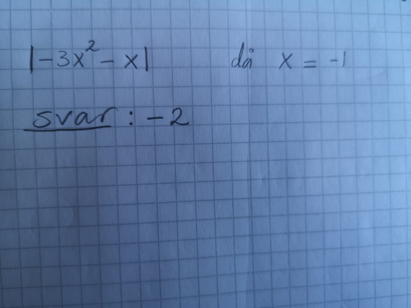 Om du har räknat innanför de där strecken så är värdet -2, men dessa streck betyder hur stor avståndet från -2 till 0 är i tallinjen och avstånd är alltid större än 0. Då innebär att det rätta svaret är....?