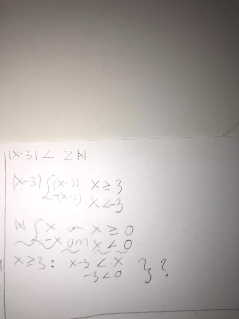 Du har skrivit 2|x| i början, så det blir x-3 < 2x.